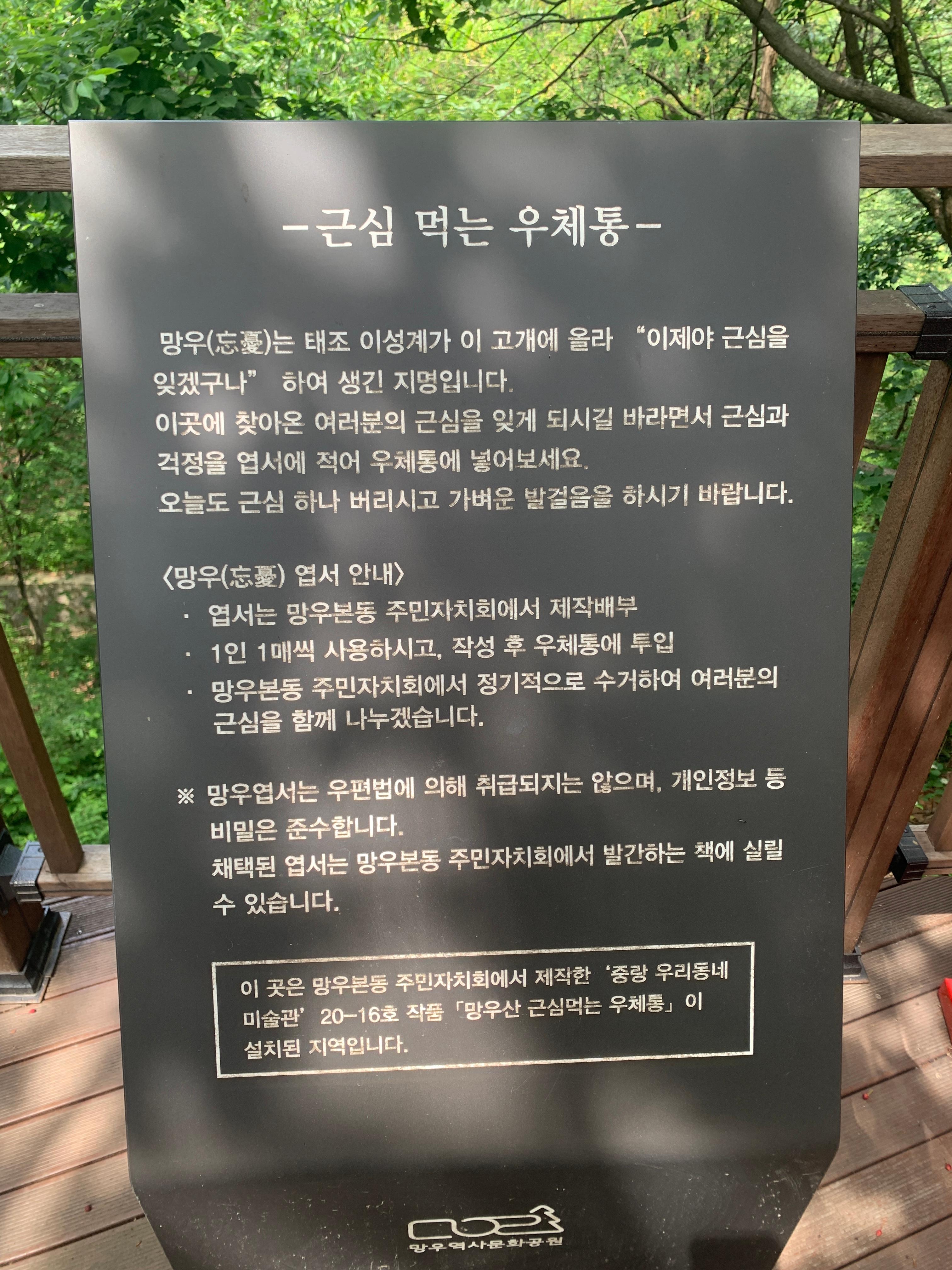 이곳에 찾아온 여러분의 근심을 잊게 되시길 바라면서 근심과 걱정을 엽서에 적어 우체통에 넣어보세요.