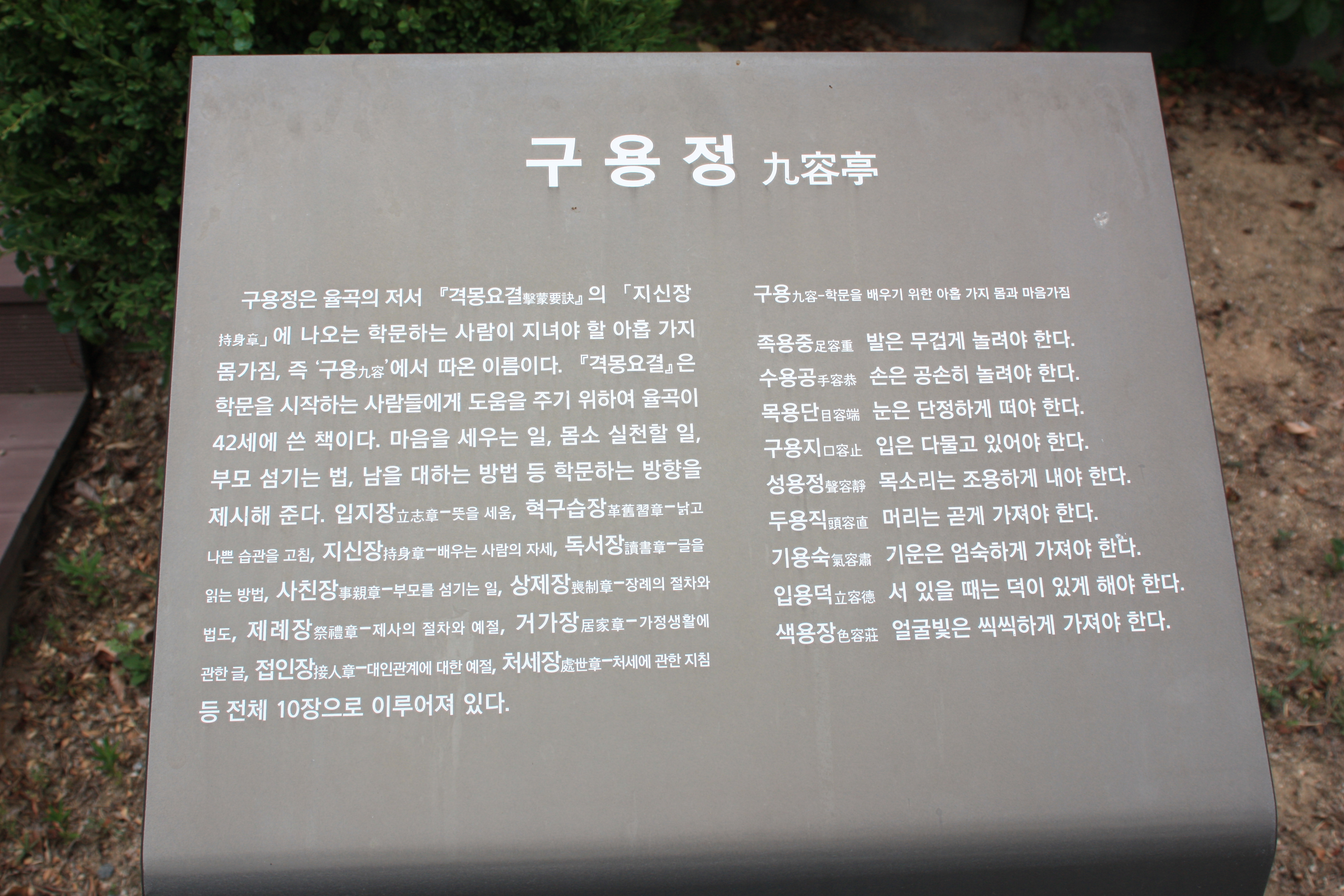 구용 - 학문을 배우기 위한 아홉 가지 몸과 마음가짐