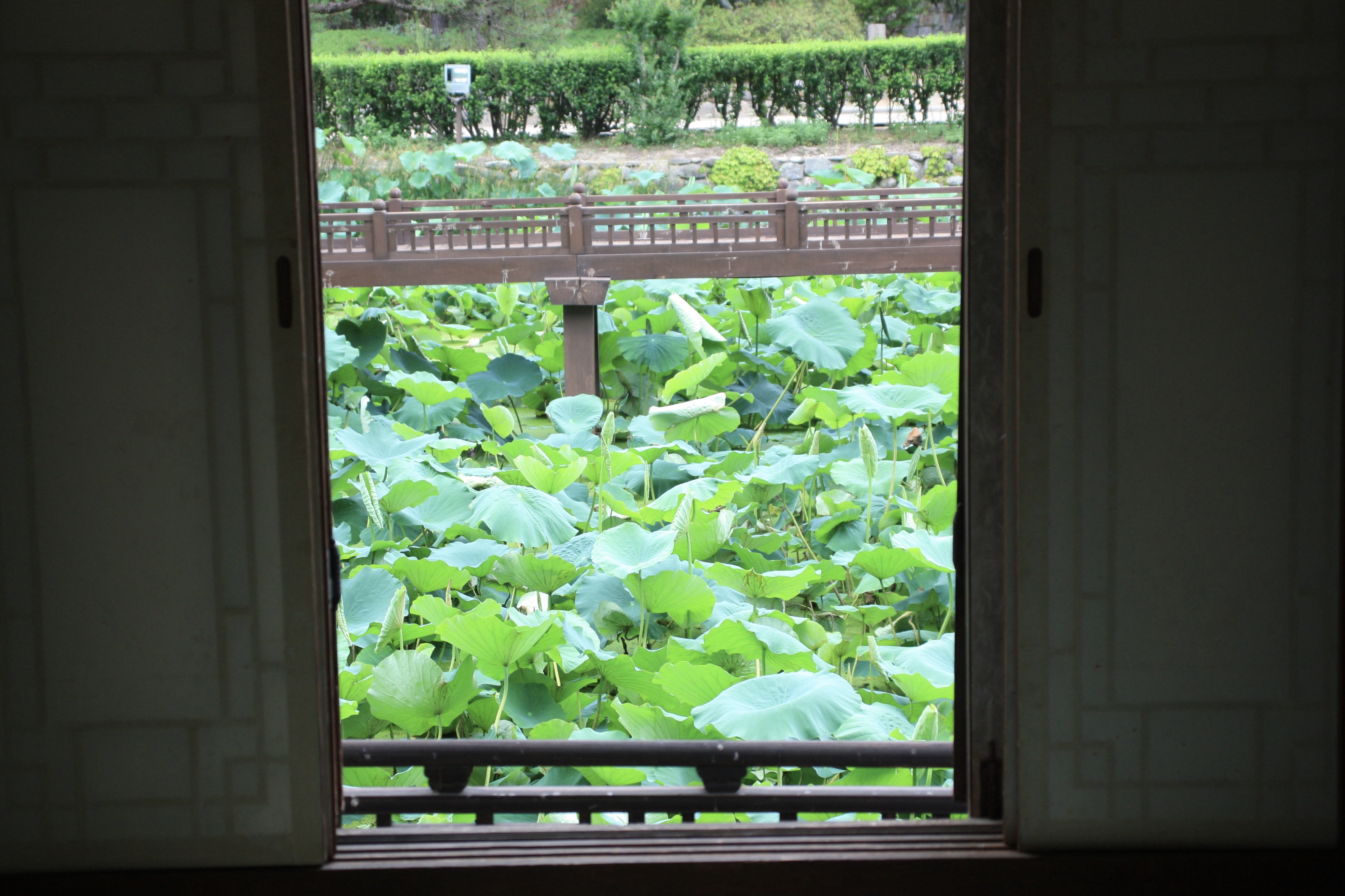 귀퉁이를 돌아가면 합죽선 모양의 ‘활래정’ 편액이 눈에 들어온다. 규원의 작품으로, 쪽빛 바탕에 흰 행서 글씨다.