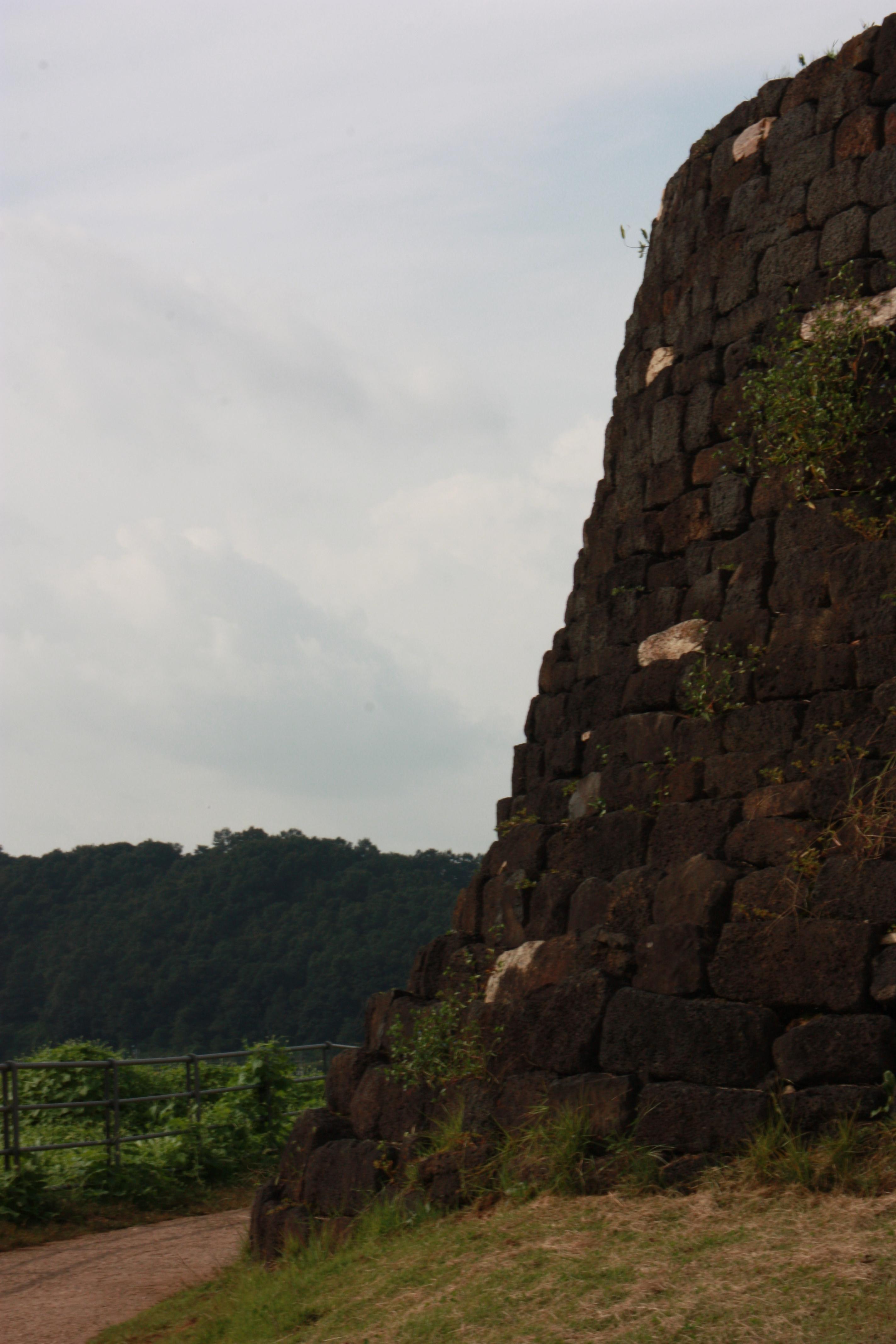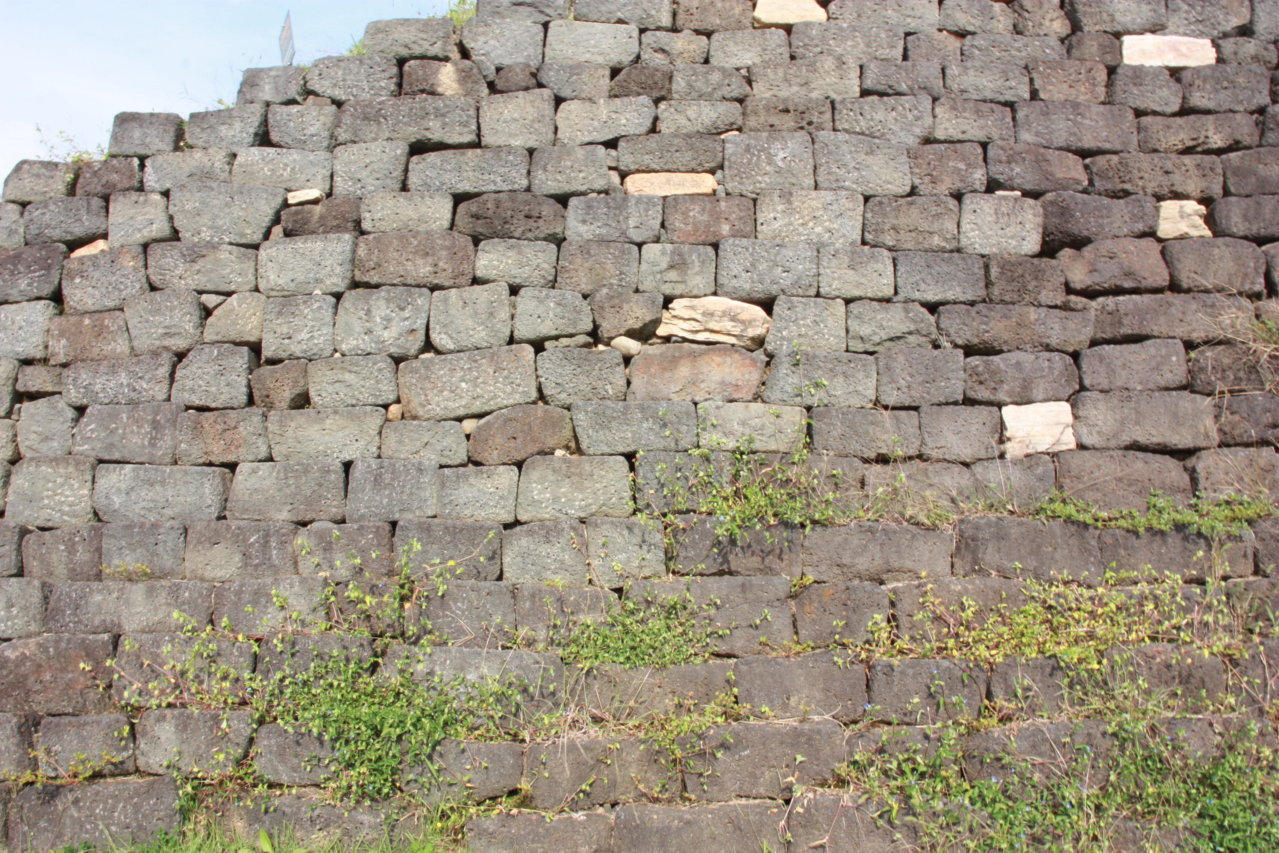 이것이 동벽의 남쪽 치다, 치는 다시 현무암의 기초를 가진 반원형의 성벽으로 다시 돌려저 있는테, 치를 수리하는 과정에서 추가로 쌓은 것으로 보인다,