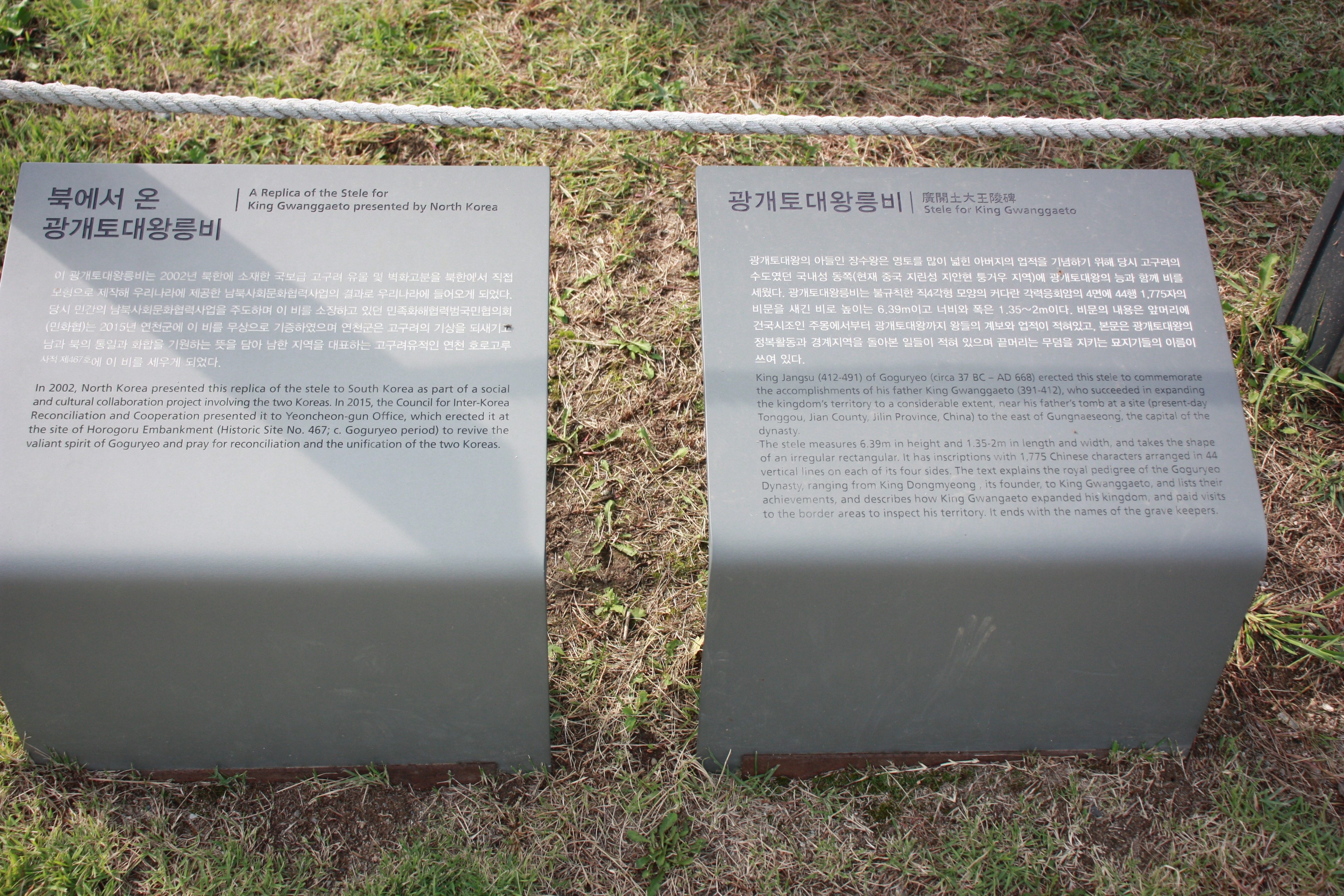 이 광개토대왕릉비는 2002년 북한에 소재한 국보급 고구려 유물 및 벽화고분을 북한에서 직접 모형으로 제작해 우리나라에 제공한 남북사회문화협력사업의 결과로 우리나라에 들어오게 되었다.